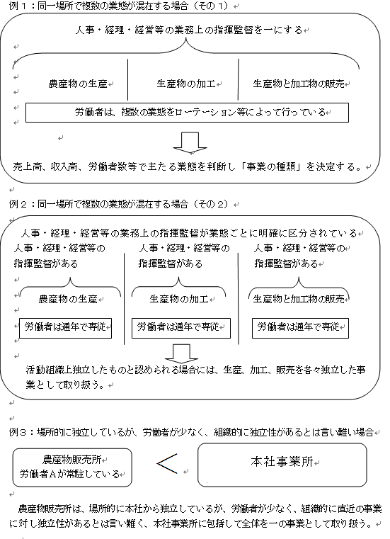 なお、複数の業態が混在している場合に何を「主たる業態」とするかという判断は、売上高、収入高、労働者数等で決定します。