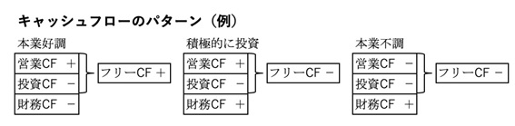 一方、本業が不調で資金繰りが厳しく借入をしている場合は、フリーキャッシュフローはマイナス、財務キャッシュフローはプラスとなり、本業の立て直しが必要です。