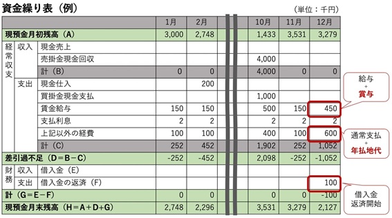 資金の流れを確認するには、月次で資金繰り表を作成することが有用です。いつ・いくら資金が必要か、ということを事前に明らかにすることで、資金調達も余裕をもって動くことを可能にし、資金ショートを未然に防ぐことになります。
