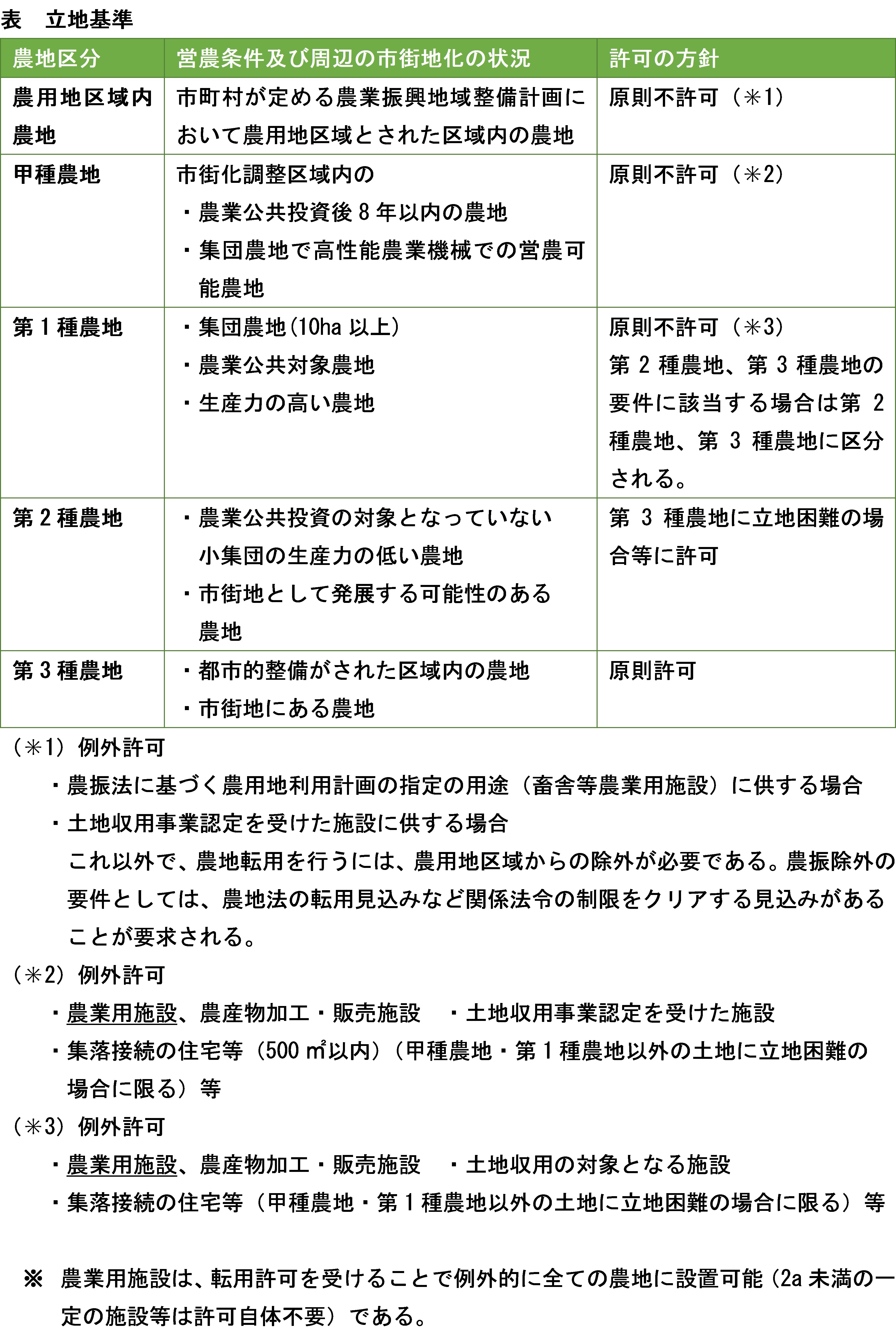 - 農用地利用計画に指定された用途に供するための農地の転用(例えば、農業用施設用地として用途区分が行われている農地で農業用施設を建設する場合)