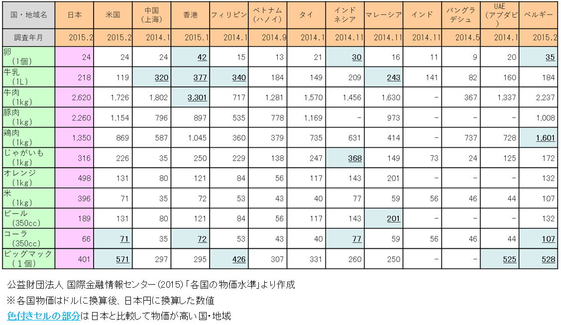 輸出現地の価格感を知るうえで、公益財団法人国際金融情報センターの「各国の物価水準」(https://www.jcif.or.jp/)が非常に有用です。各国で物価に差があり、品目によっては日本より高いケースもあることが分かります。こうしたデータをもとに、流通事情や文化的な背景を読み取り、輸出の可能性を考えることが重要です。
