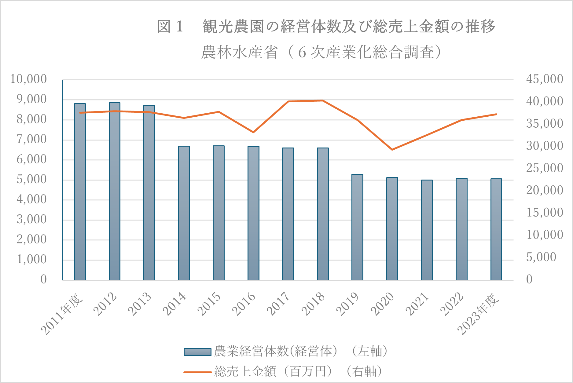 ※ 観光農業(農業生産関連事業)には、主な業態として、観光農園の他に、農産物の加工、農産物直売、貸農園・体験農園、農家民宿、農家レストラン等があります。