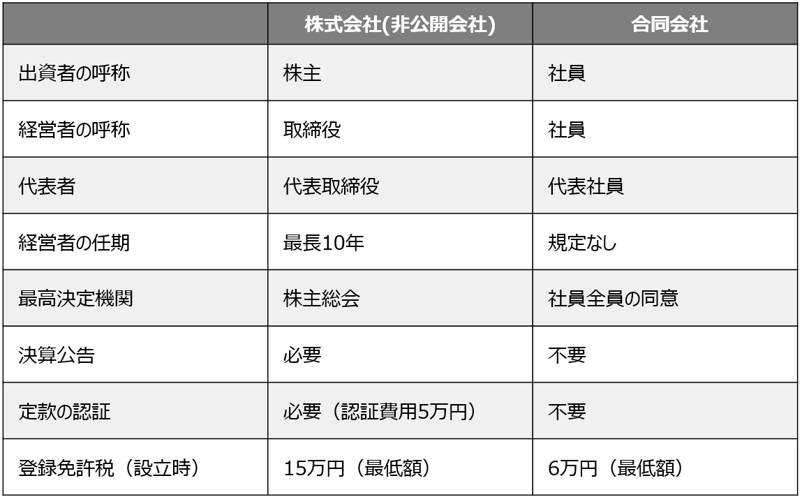また、最近では、合同会社を選択するケースも増えてきました。合同会社は2006年の会社法改正により新しく設立できるようになった会社形態です。合同会社は、株式会社に比べてまだ認知度が低いですが、法人の設立時に登記費用が安いなどコスト面でメリットがあります。