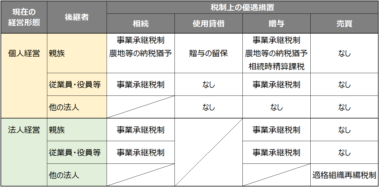 後継者に対して「相続税」が課されます。相続による事業承継には、事業承継税制、農地等の納税猶予の適用が考えられます。