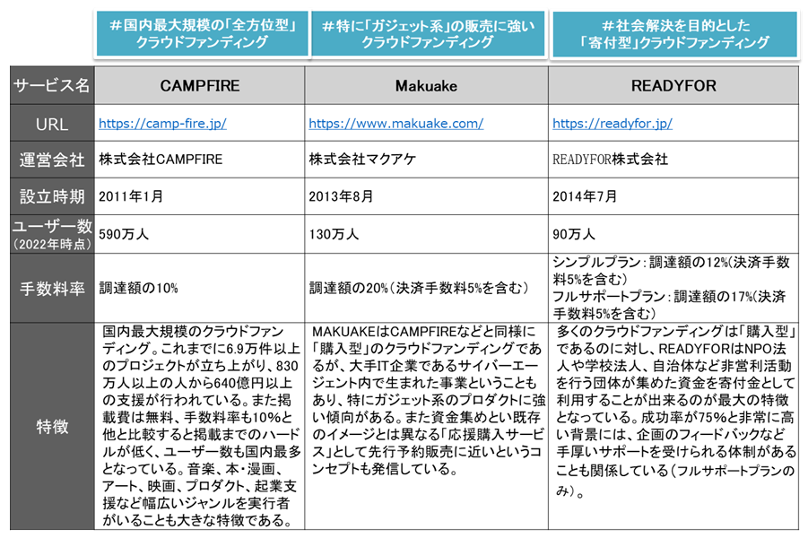 この背景には、日本では、欧米ほど「投資」の概念を理解している消費者が少なく、確実なリターンが求められることがあります。そのため、クラウドファンディングのWEBサイトとして大手の一つであるMakuakeなどは、「通販」に近いサイトになっており、返礼品が重要な要素になっています。