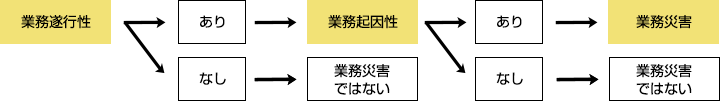 業務起因性とは、業務と傷病等との因果関係をいいます。業務災害には、業務と傷病等の間に相当因果関係がなければなりません。