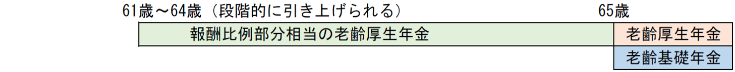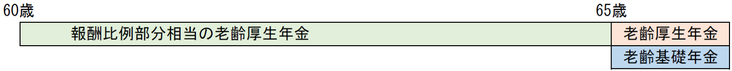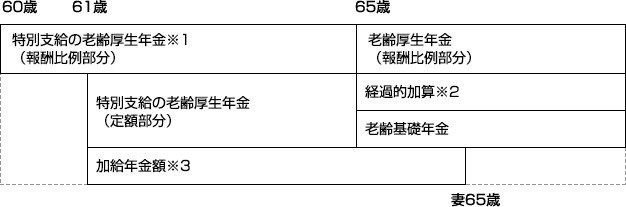 | 老齢になったとき | 60歳代前半から65歳まで特別支給の老齢厚生年金 65歳から老齢基礎年金と老齢厚生年金 |