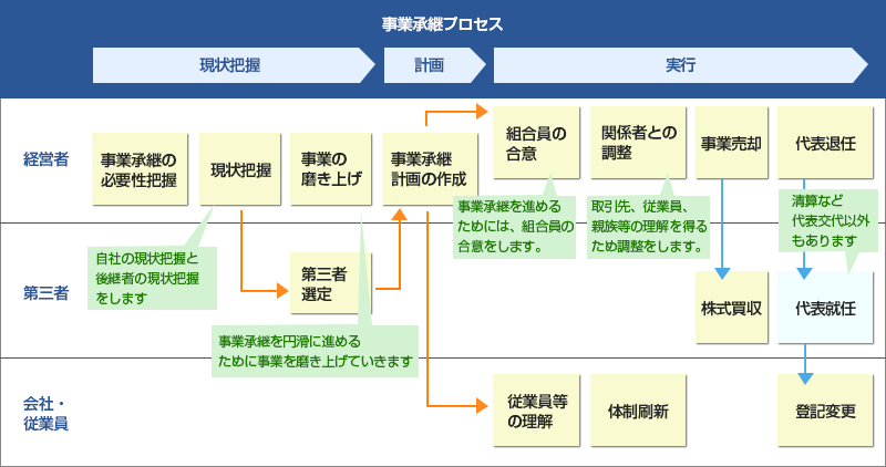 - 事業承継を円滑に前に進めるために、組合員の合意形成をする必要があります。