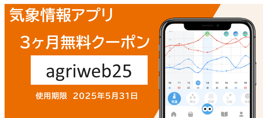 また、現在、初月無料の気象情報アプリがさらに3ヶ月間無料で利用できるクーポンも配布しております。ぜひこの機会にお試しください。