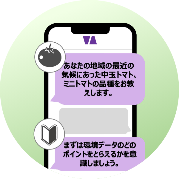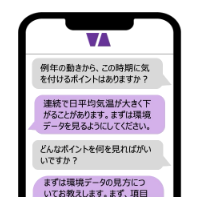 初月無料 指導員も使う東京大学発スタートアップの本格派AIが相棒に 月額880円(税込) 営農指導員も使う本格派AI。品目・地域に応じたアドバイスに加え、病害虫/雑草画像診断を搭載。よくある質問集、回答レベル選択も備え、栽培をサポート。 種苗・品種や気候・環境を加味した実践的な栽培情報が今すぐ"欲しい! 現象を正しく理解し、最適な対処(農薬/肥料/資材等)を実践したい! 従業員・外国人材も含め、組織として生産面をレベルアップしたい! 指導者、プロ農家、家庭菜園・貸農園。自分に合う内容の回答が欲しい。 01 栽培に関する実践的な情報が得られる 02 作物/地域/レベル設定で的確な回答を表示 03 翻訳、お気に入り登録など便利な機能 初月無料 栽培アシストAI 栽培に関わる全ての方の目標達成のために!東大発AIスタートアップ "きゅうりトマトなすび"とAgriweBが共創した栽培特化型AIサービスです。日々の栽培のお悩みに対し、即時に実践的な解決策を提示します。栽培アシストAI