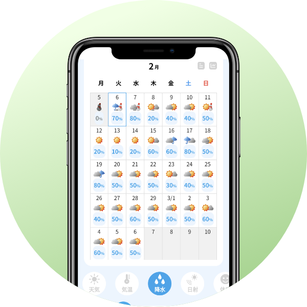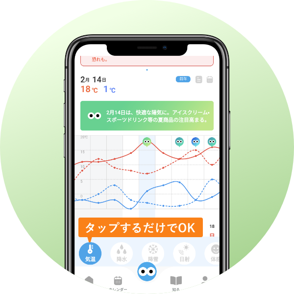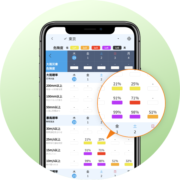 初月無料 もっと使える気象アプリで、リスクとチャンスの風を読む 月額550円(税込) 日常で目にしない長期かつ高精度の予報に加え、気象災害リスク情報、積算気温予想機能など、栽培や農業経営に役立つ各種機能を搭載。5地点を登録可能。 農場の時間毎の天気予報と実績データを手軽にサクッと収集したい! 一般の天気予報にない、長期の予報データやアラート機能が欲しい! 長期間の気象リスクを把握して、行動計画を早めに立てたい! 天気に紐づく市況や経営リスクを理解して、経営力を高めたい! 01 他にない気象情報を閲覧・利用できる 02 気象に関係し、農業に役立つ機能が使える 03 複雑な設定なし。気軽にサクッと使える 初月無料 気象情報アプリ 日本気象協会とタッグを組んだ農林中金特別パッケージ!日常で目にしない長期の予報に加え、アラート機能など経営に役立つ各種機能を具備。気象に起因するリスクやチャンスを読み解く一言解説も日々提供。気象情報アプリ